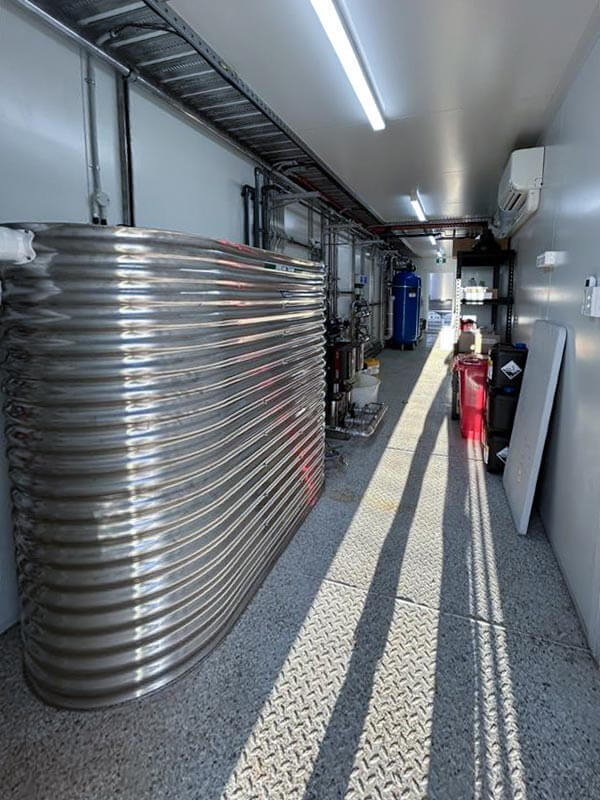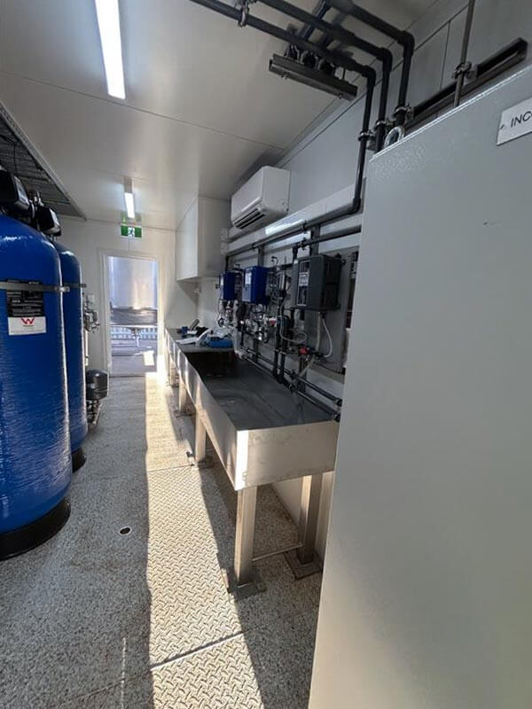 - Containerised treatment plant designed for easy transport, secure on-site installation and compatibility with cyclone-rated and weather-protected infrastructure.